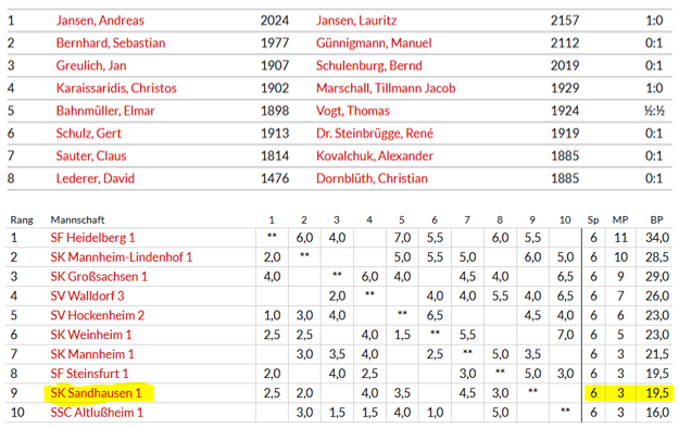 Landesliga: SKS 1 – SF Heidelberg 2,5 : 5,5